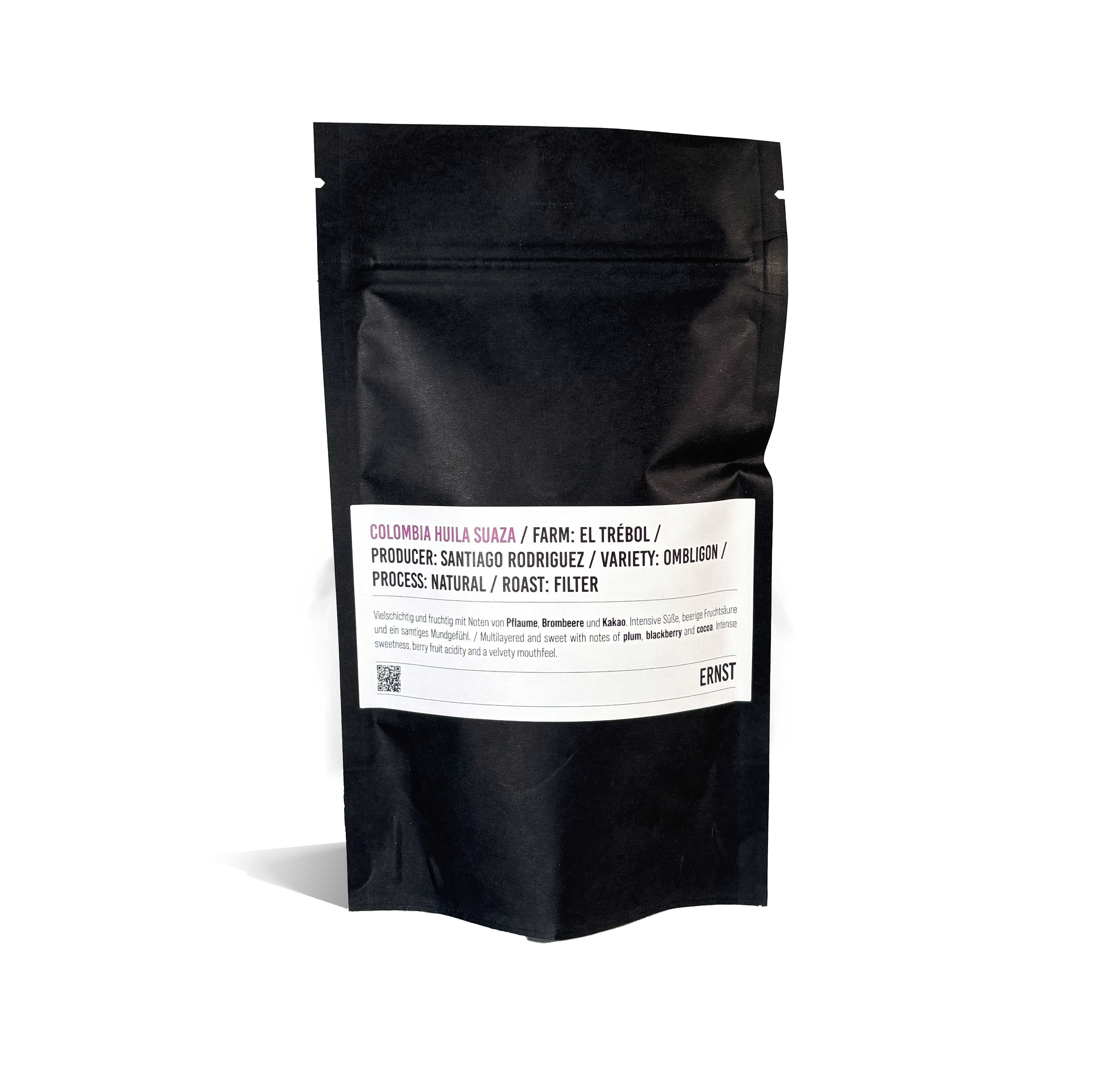 Vielschichtig und fruchtig mit Noten von Pflaume, Brombeere und Kakao. Intensive Süße, beerige Fruchtsäure und ein samtiges Mundgefühl.