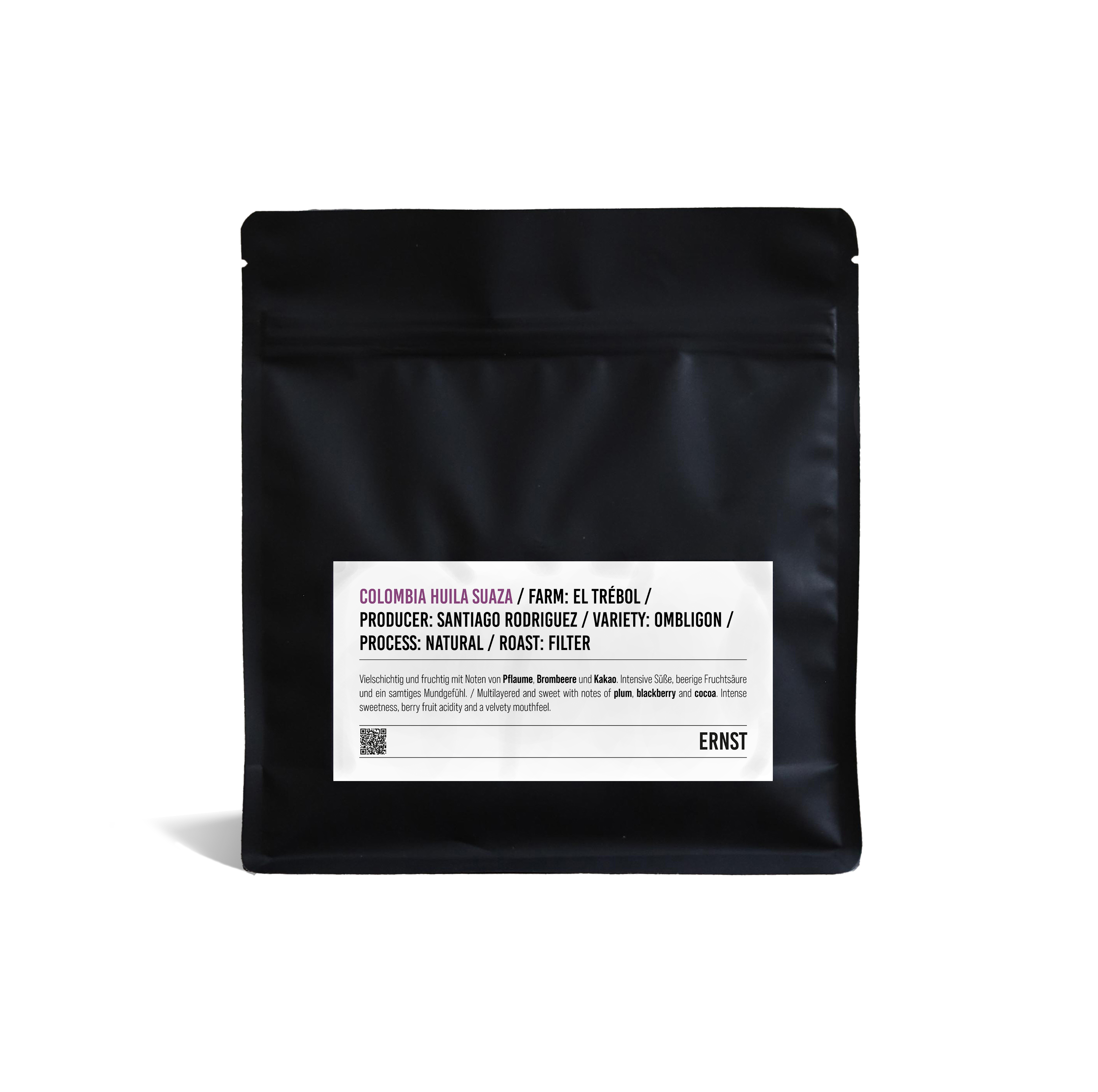Die Finca El Trébol liegt auf 1.620 Metern Höhe in den grünen Hügeln von Acevedo, Huila, Kolumbien, und wird von Santiago Rodriguez Rojas geführt. Die 3 Hektar große Farm mit etwa 15.000 Kaffeebäumen befindet sich seit 27 Jahren im Familienbesitz und wurde in ein spezialisiertes Projekt für hochwertigen Kaffee umgewandelt. Neben Kaffee gedeihen auf dem biodiversen Gelände auch Maniok, Kochbananen, Zitronen und Mandarinen – die Ernte erfolgt von April bis Juni, der Export von September bis November.