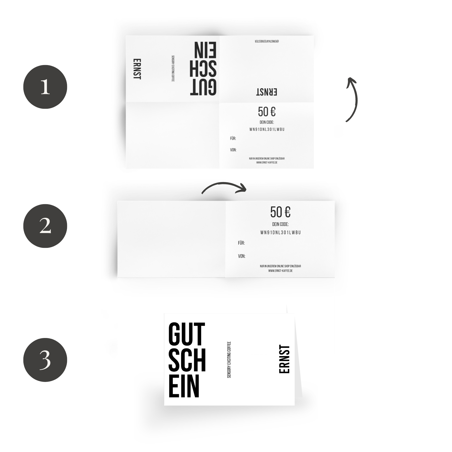 Der Gutschein wird dir per E-Mail geschickt und ist gültig für alle Produkte in unserem Onlineshop. Diesen kannst du dir dann selber ausdrucken und zusammenfalten. Die Anleitung findest du weiter unten.